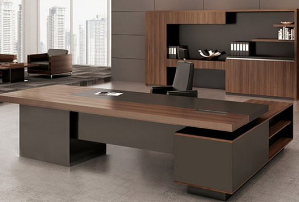 其实现在很多公司的老板办公室兼具办公、会谈的功能,多功能型的办公室面积较大,很多老板更会倾向于这类办公室,既气派又实用。可以在办公与会议之间自由切换。这时的老板办公桌选择也可以多样化,搭配着装修风格来就可以了。同时搭配设置的有文件柜、办公沙发和办公茶几等。
